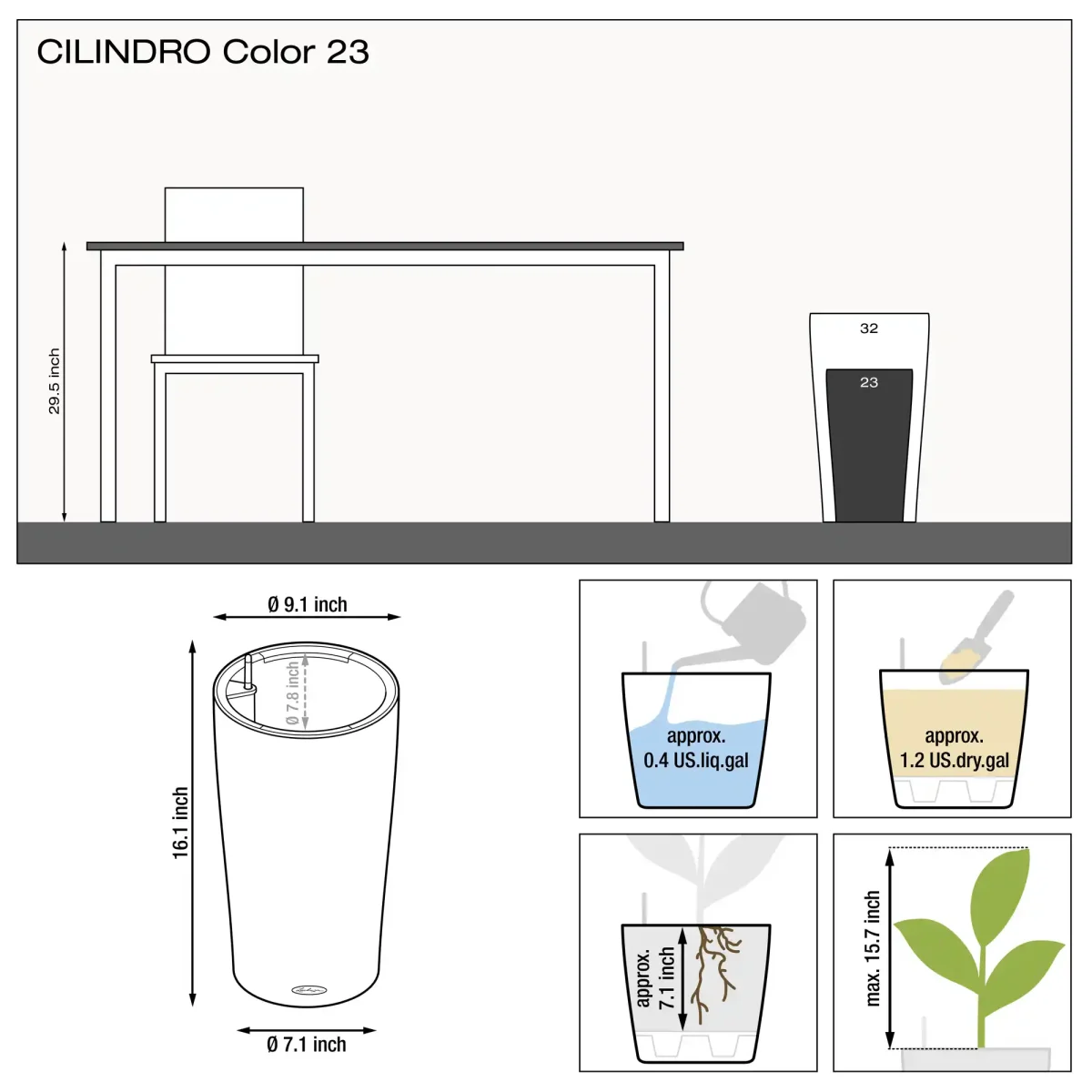 CILINDRO Color 23 White, Self-Watering Tall Planter, D9.1 H16.1 in