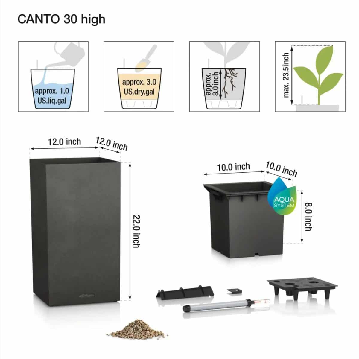 CANTO Stone High 30 Sand Beige, Self-Watering Tall Planter, H22 L11.8 W11.8 in