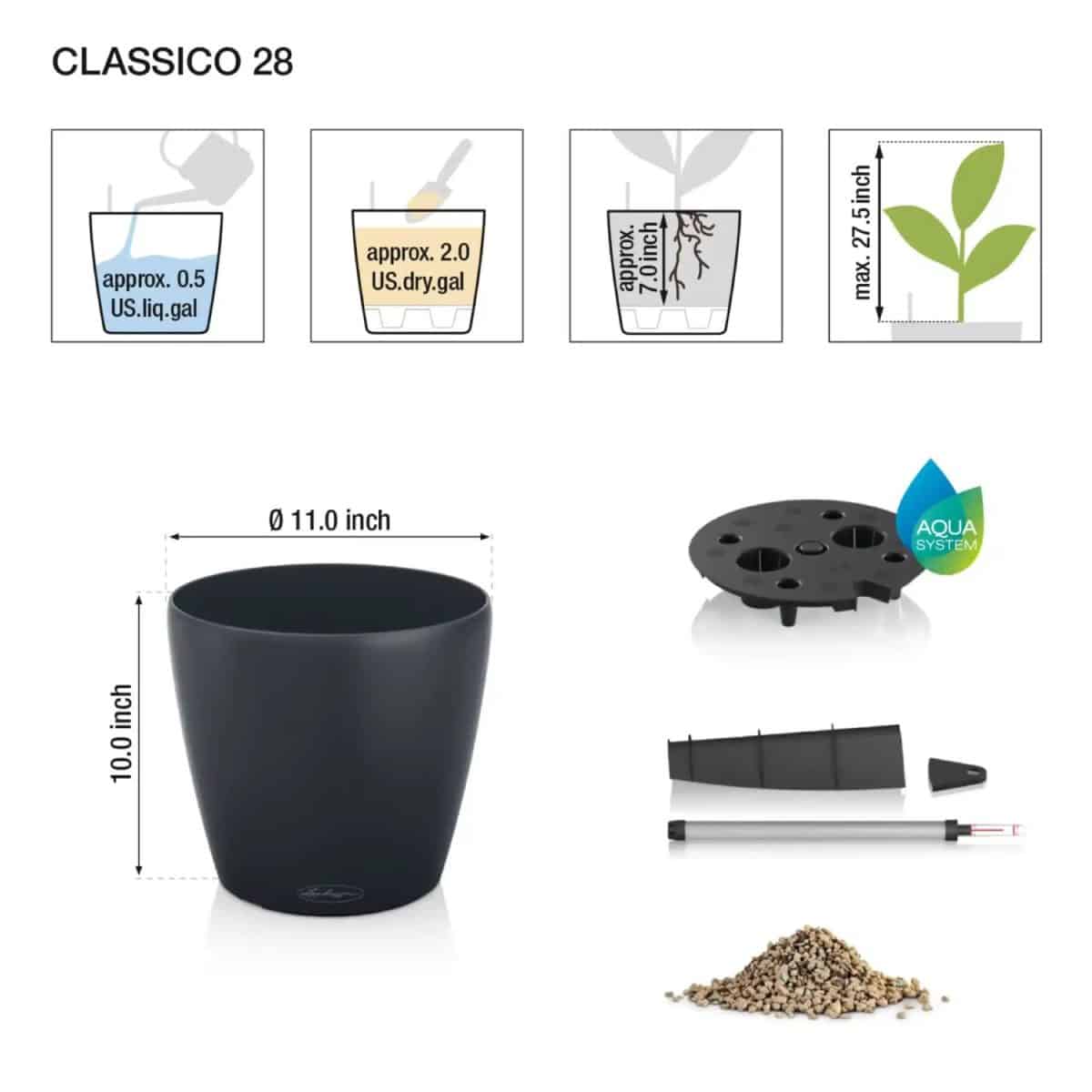 CLASSICO Color 28 Slate, Self-Watering Round Planter, D11 H10.2 in