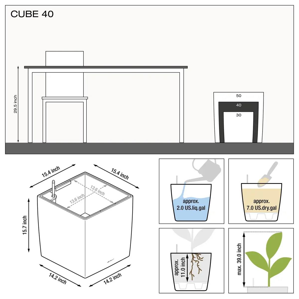 CUBE 40 Premium Black High Gloss, Self-watering Square Planter, H15.7 L15.7 W15.7 in