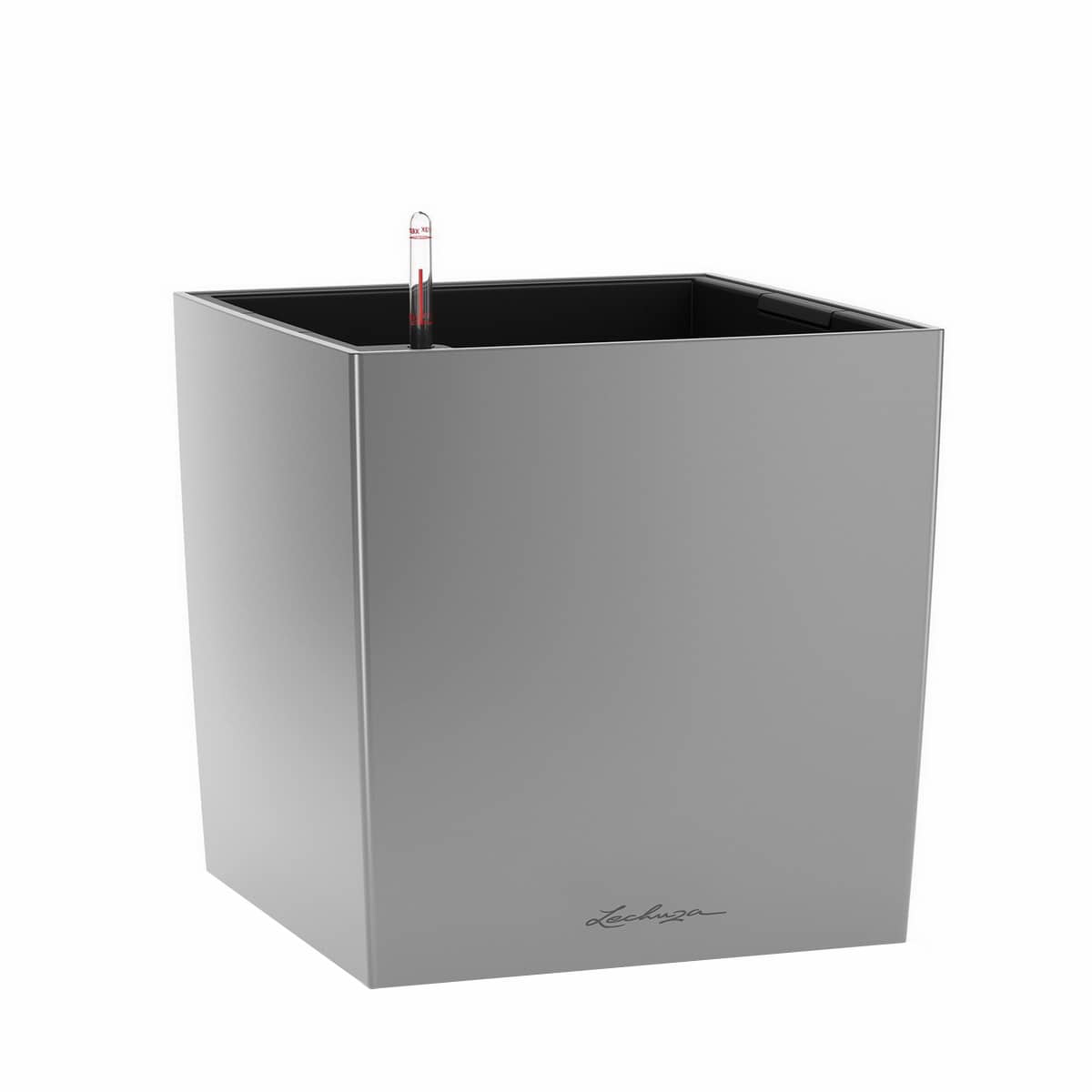 CUBE 40 Premium Silver Metallic, Self-watering Square Planter, H15.7 L15.7 W15.7 in
