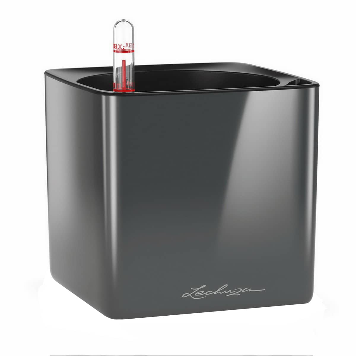 CUBE Glossy 16 Charcoal High Gloss, Self-Watering Indoor Small Plant Pot, H6.3 L6.7 W6.7 in