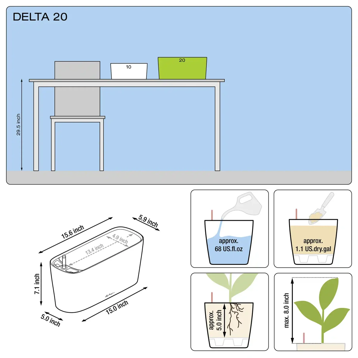 DELTA 20 Cream White High Gloss, Self-watering Planter Indoor, H7.1 L15.7 W5.9 in