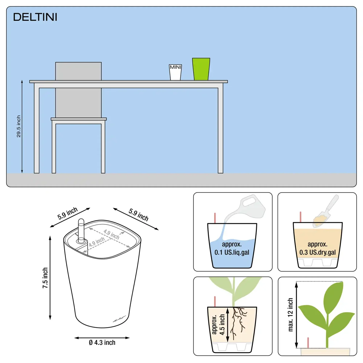 DELTINI Cream White High Gloss, Self-watering Small Indoor Planter, H7.5 L5.9 W5.9 in