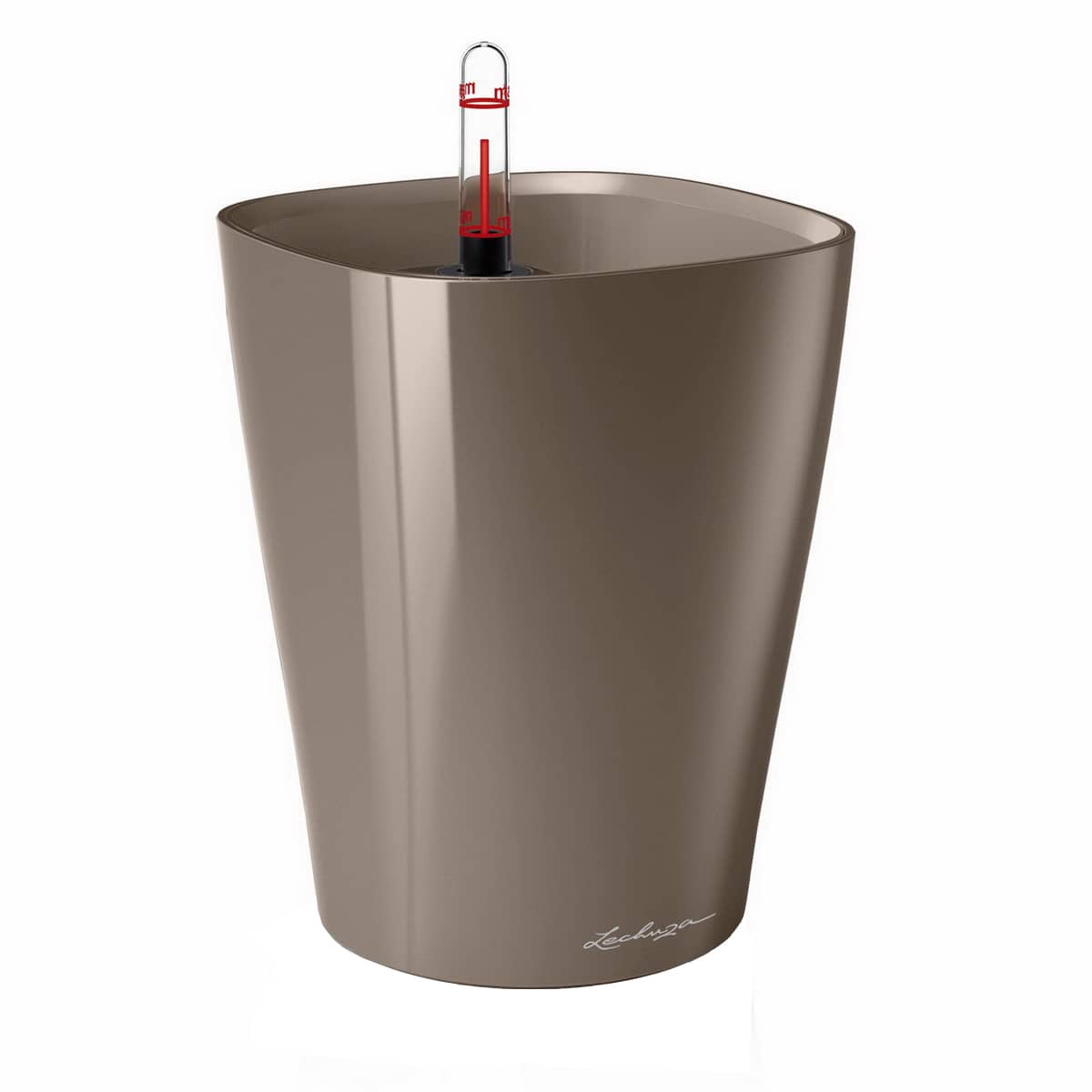 DELTINI Shiny Taupe High Gloss, Self-watering Small Indoor Planter, H7.5 L5.9 W5.9 in