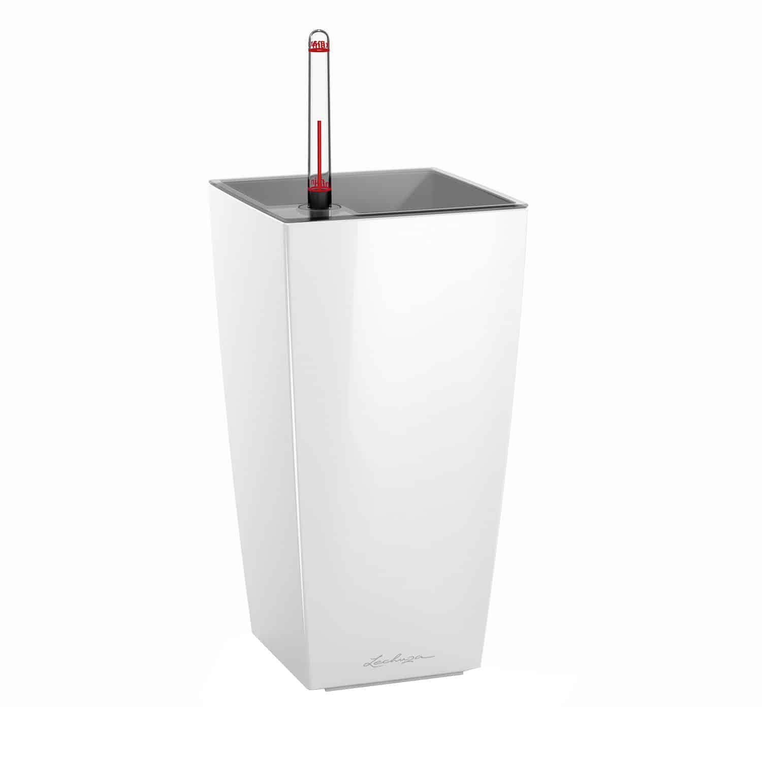 MAXI-CUBI Cream White High Gloss, Self-watering Small Indoor Planter, H10.2 L5.5 W5.5 in