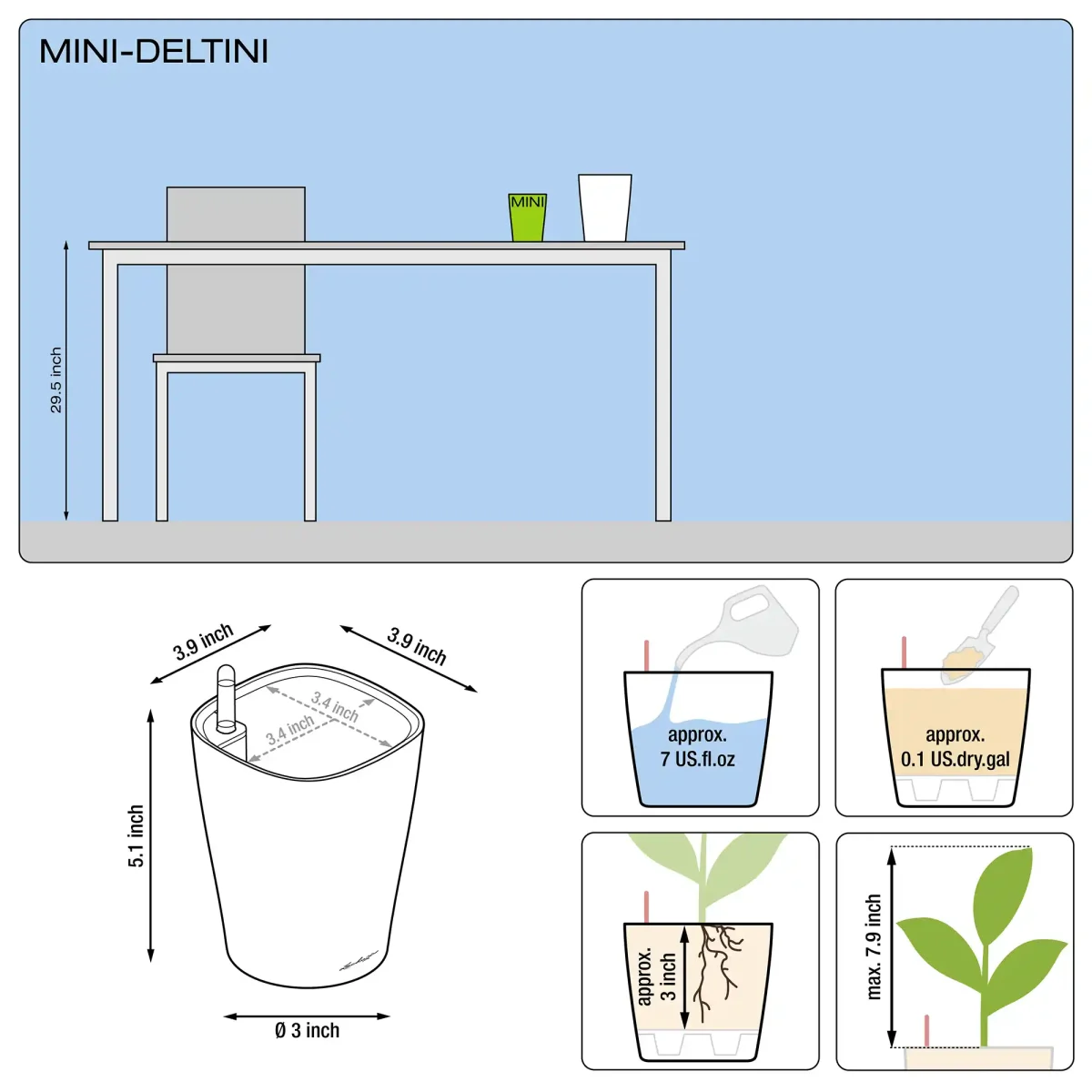 | Planter liner, dimension ~ | 3.4 x 3 inch | 4.9 x 4.5 inch |