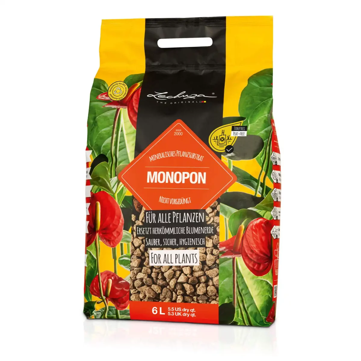 Due to its volume-stable properties, this plant soil also offers the plant a stable hold and a firm stand in the planter. This makes MONOPON the ideal substitute for soil for complete planting in the conventional pots. The substrate is peat-free for nature’s sake.