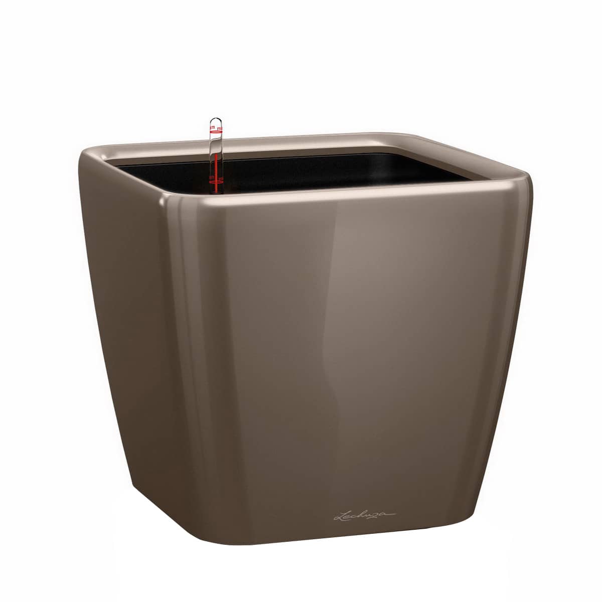 QUADRO LS 28 Shiny Taupe High Gloss, Self-Watering Square Planter, H10.2 L11 W11 in