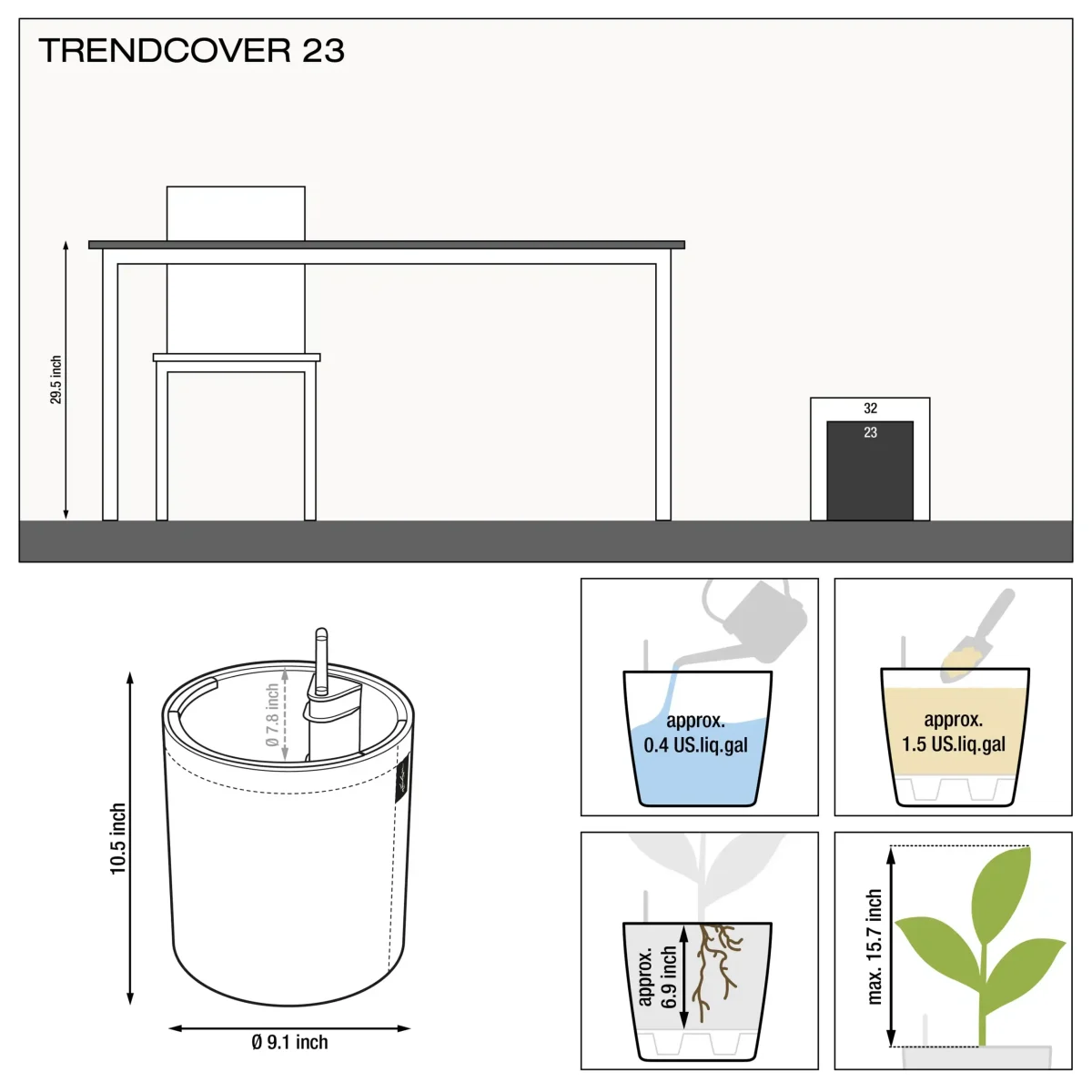Plant height max. 15.7 inch 23.6 inch