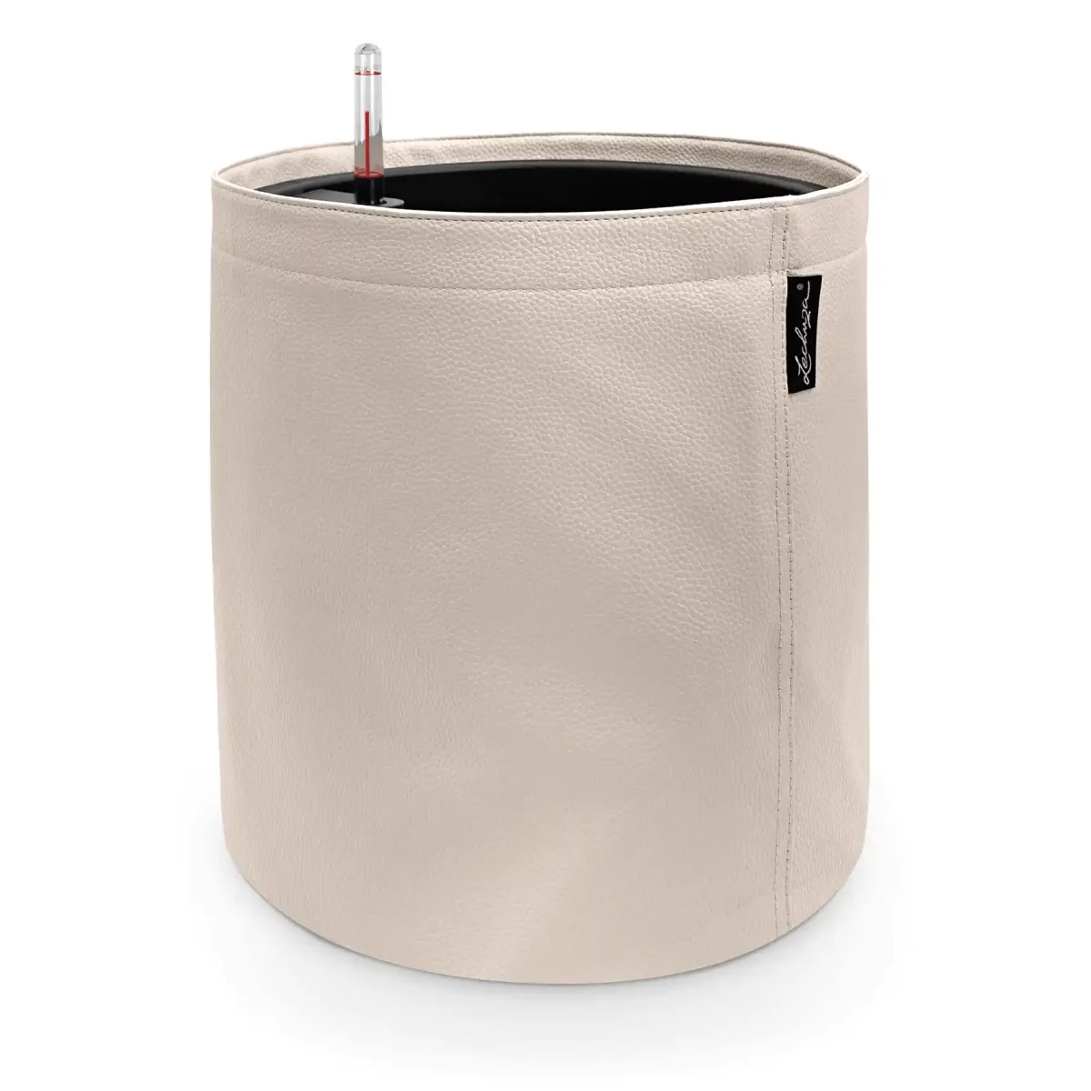 TRENDCOVER Vegan Leather 32 Cream, Self-Watering Indoor Round Planter, D12.6 H13 in