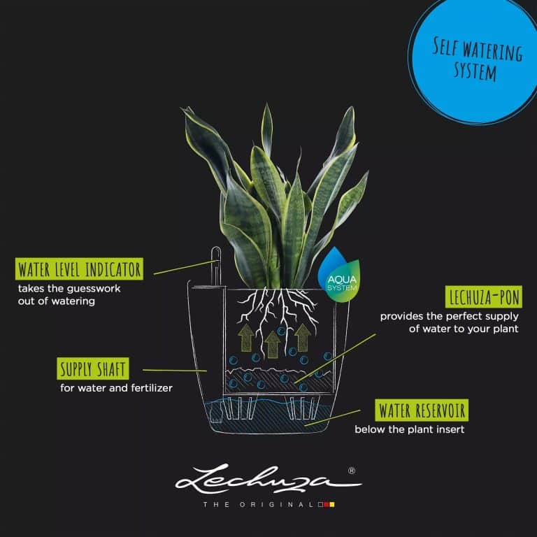 LECHUZA planters consist of an external and an internal pot. Pots are different in height and due to this difference, a space is formed inside – a container for water.