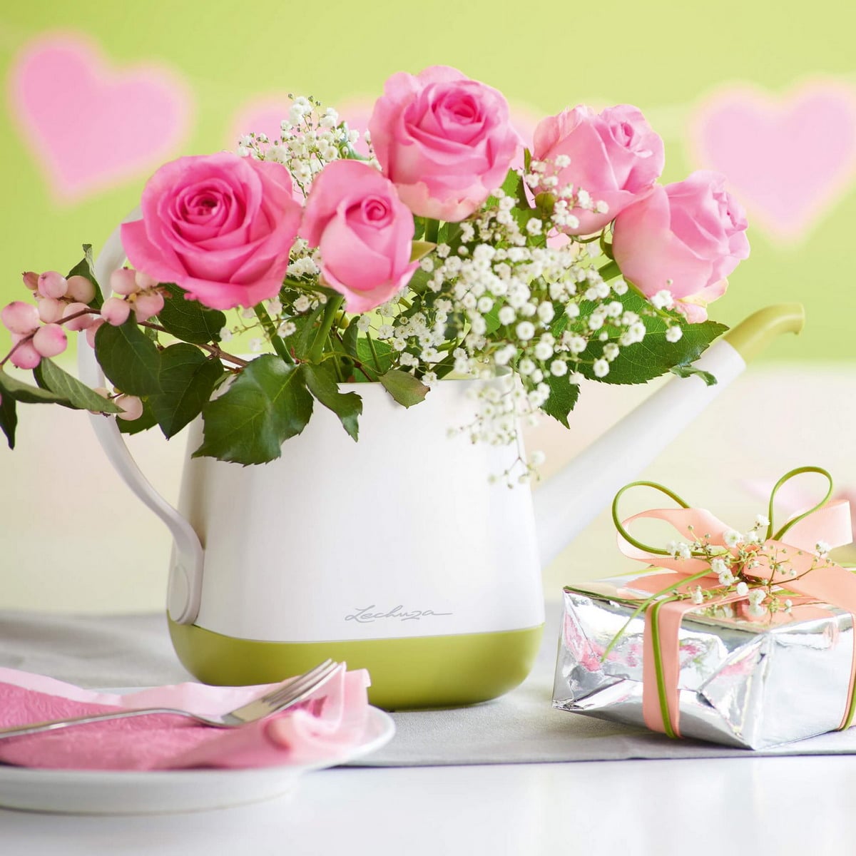 YULA Watering Can for Houseplants, White and Pearl Rose, 1.7 L